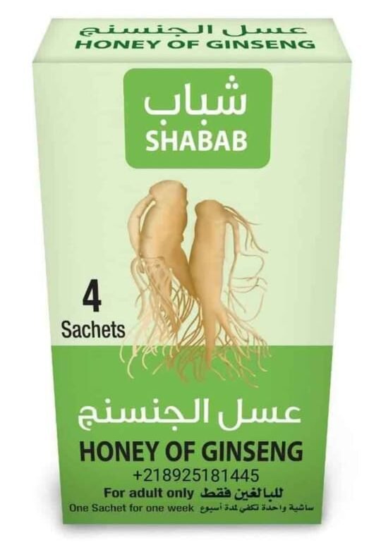 Key Benefits & Features: 1. Natural Vitality Booster: Combines the ancient power of Ginseng with the nutritional benefits of honey. 2. High Potency Formula: Designed specifically for adult wellness and stamina. 3. Long-Lasting Results: One sachet is formulated to support your body for one full week. 4. Convenient Packaging: Includes 4 individual sachets—a full month’s supply in one box. 5. 100% Herbal Ingredients: A safe, natural alternative for those seeking a "Youthful" (Shabab) energy levels.